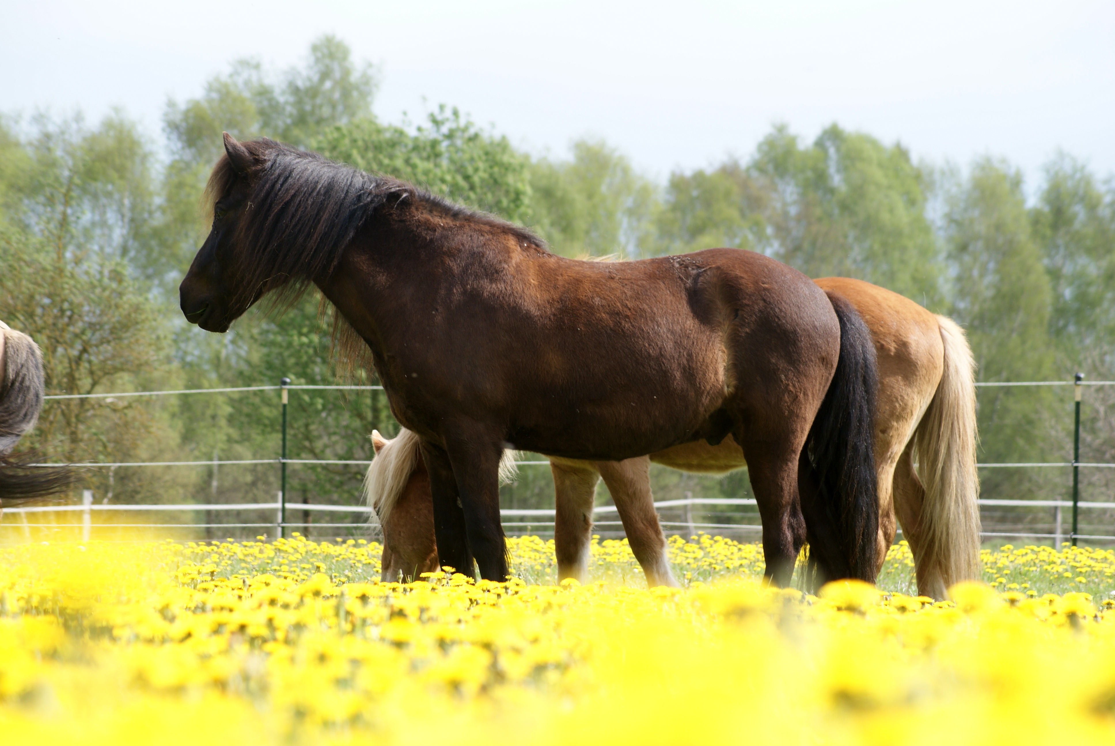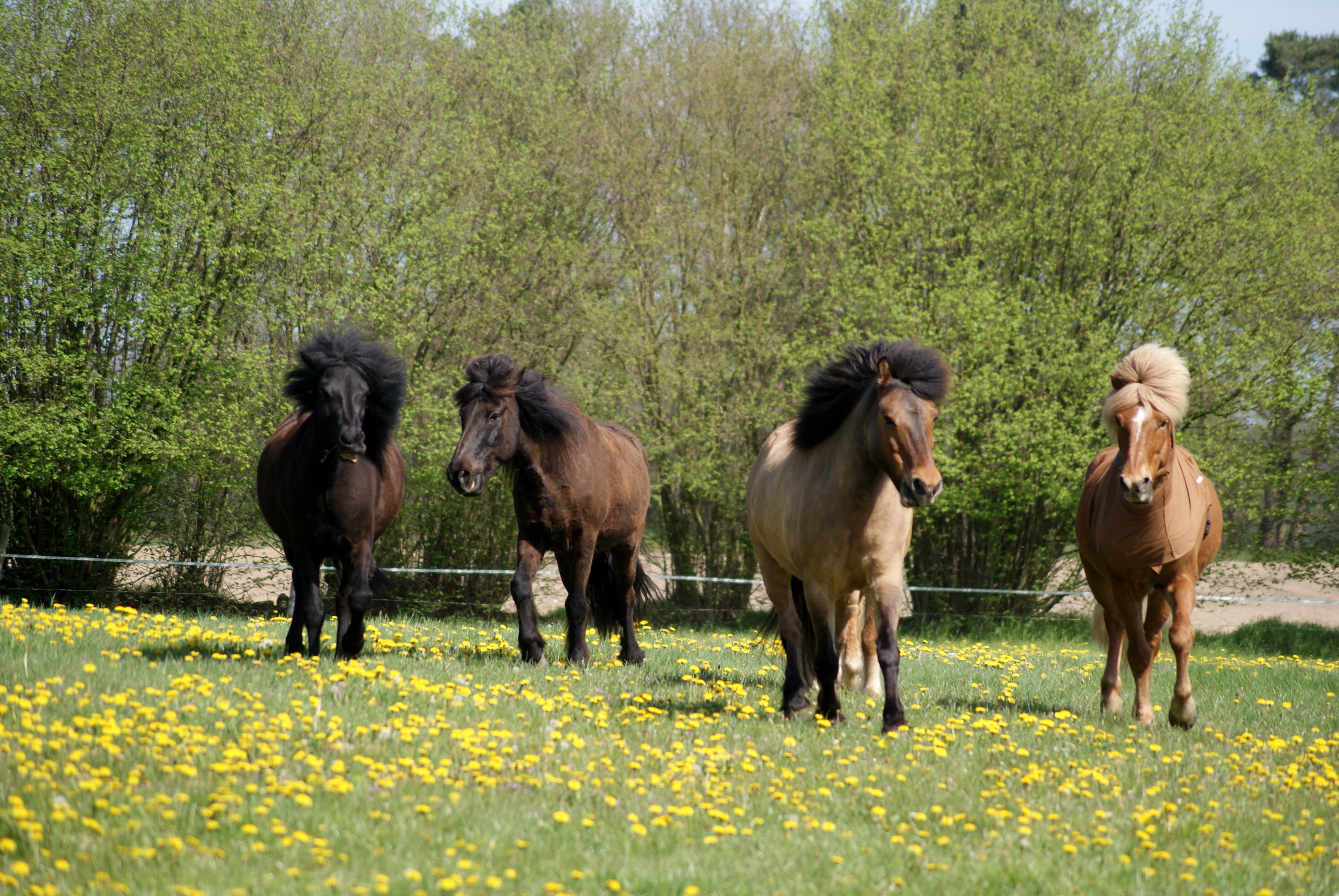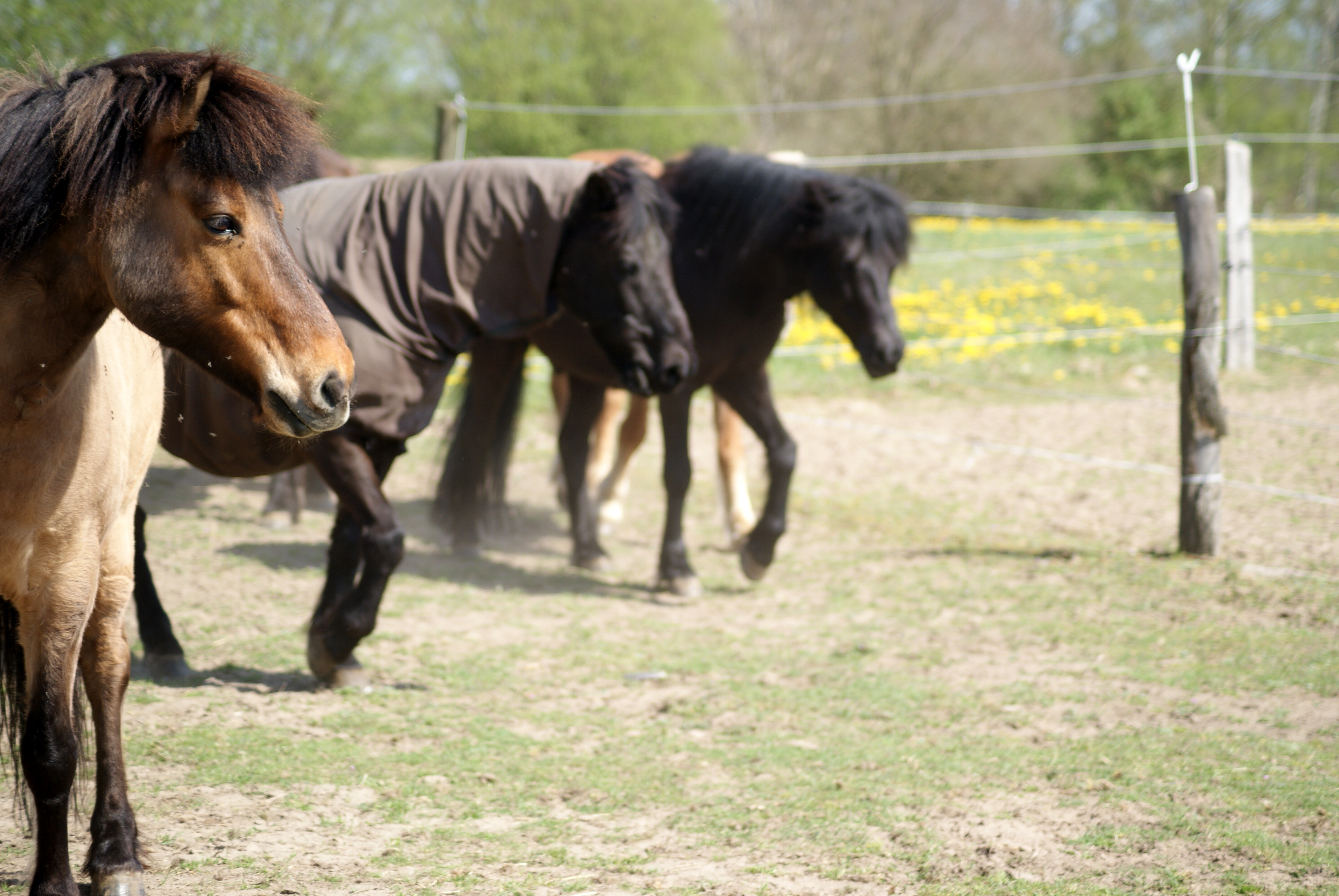 Ein paar schöne Momente unserer Vierbeiner hat Tini eingefangen, auch wenn es an diesem Tag recht fliegenreich war, sieht man den Ponys die Freude über das frische Grün an…